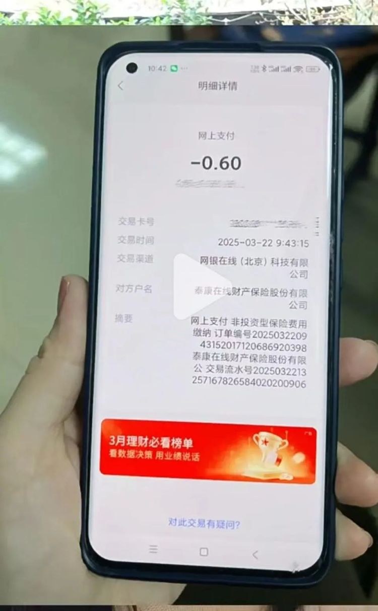 “只扣6毛钱,很多人以为是单车使用费,仔细一看银行账单才发现是保险费用。”社交平台个人标签为“金融硕士”“保险经纪人”的璇子(化名)表示,“6毛钱看着不多,但是如果不退保的话,会一直扣下去,下个月就不是6毛了。”